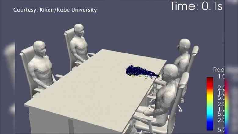 Shkencëtarët kanë shfrytëzuar superkompjuterin Fugaku për të matur modelet e përhapjes dhe trajektoret e grimcave në formë virusi nga personat e infektuar në kushte të ndryshme.