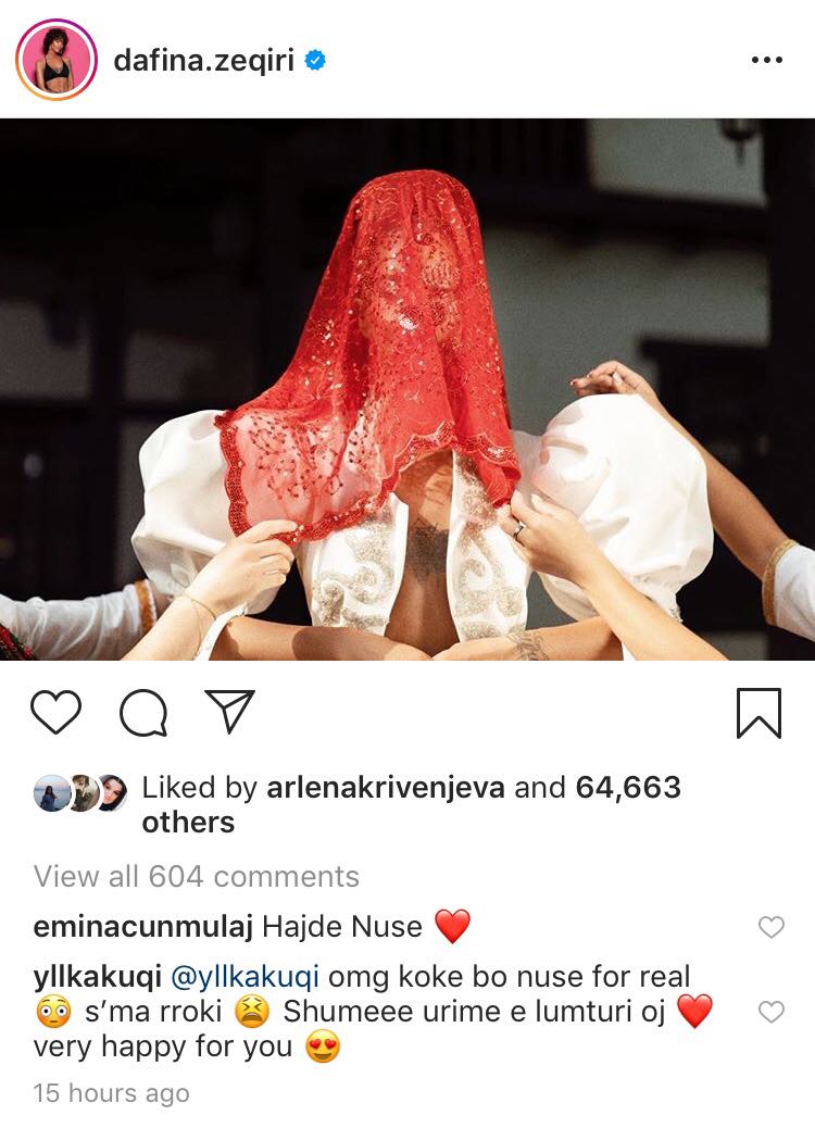 Së fundmi, ajo ka bërë kurioz ndjekësit e saj në Instagram, pasi fshiu të gjitha postimet që i kishte në këtë rrjet social, duke e lënë vetëm një imazh, ku këngëtarja 31 vjecare shfaqet me shami në kokë, si nuse.