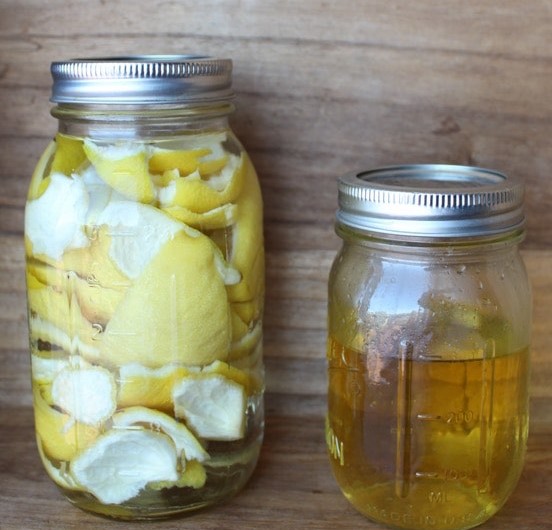 Lani dhe qëroni limonët. Levorën vendoseni në një kavanoz të xhamit. Mbulojini ato me vodka (alkool) dhe mbylleni kavanozin. Lëreni të qëndrojë në një vend të freskët dhe të errët për 1-6 javë.