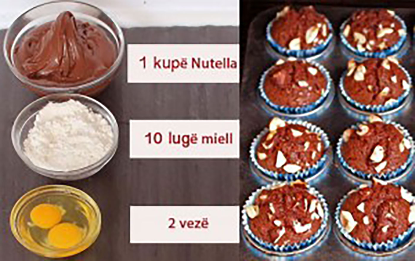 4. Pjekeni në furrë me temperaturë 200 gradë, rreth 15 min. Në ndërkohë mund të kontrolloni pjekjën (ju ndihmon një shkop për pastrimin e dhëmbëve, i cili duhet të jetë i thatë kur ta largohet nga brumi)